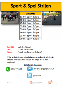 Vanaf Woensdag 11 April zal er wekelijks gesport kunnen worden onder begeleiding van de jongerenwerker in Strijen op het veldje in de wijk ‘Land van Esch’.