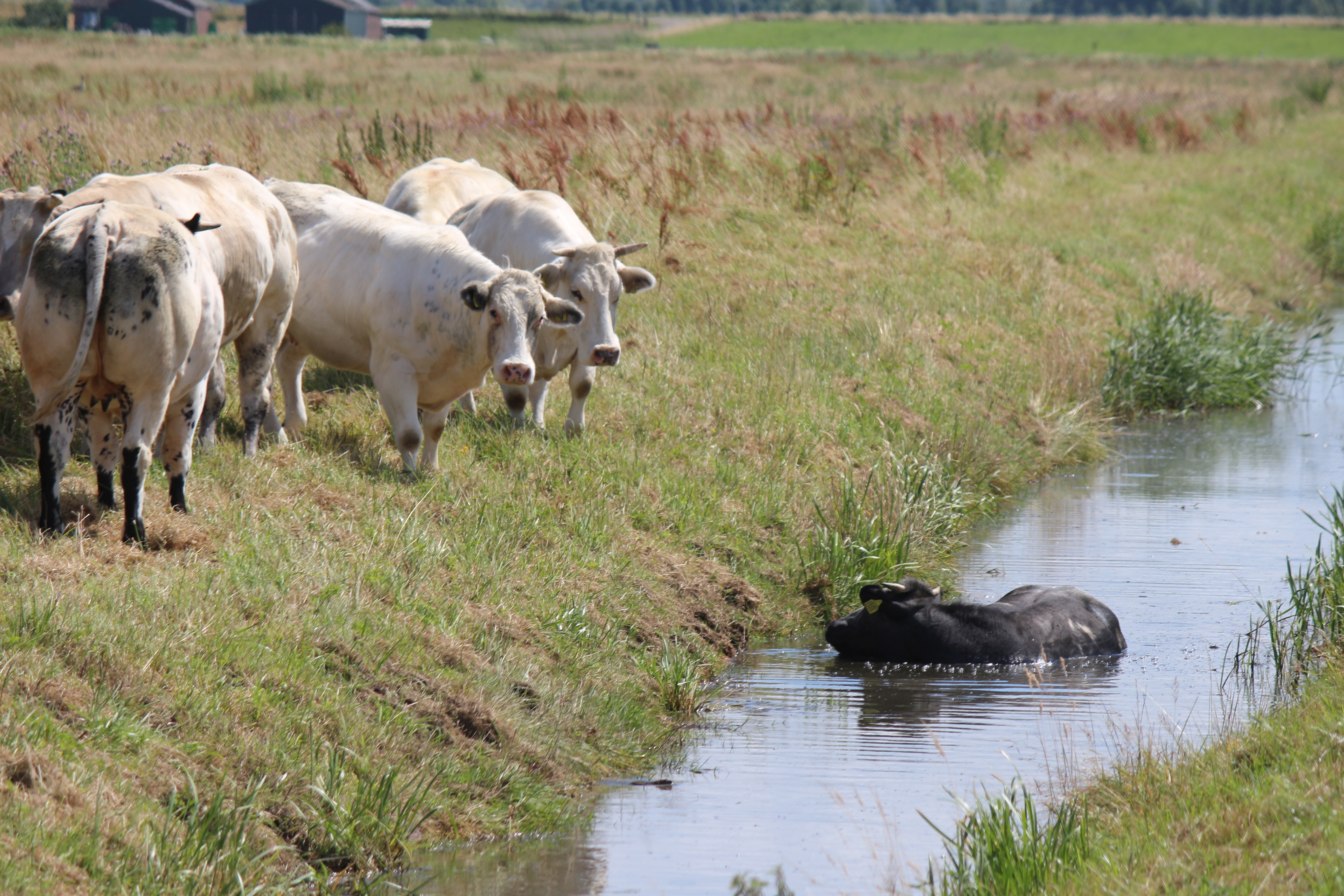 De koe droogde mooi op in het zonnetje en kon met een gerust hart weer lekker gaan grazen in de wei.