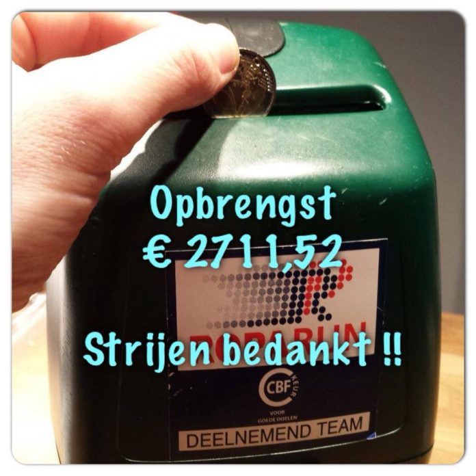 STRIJEN – De opbrengst van De Driemtiemstrien collecte ten bate van de Roparun was €2711,52 en daar willen het team de inwoners van Strijen hartelijk voor bedanken !!