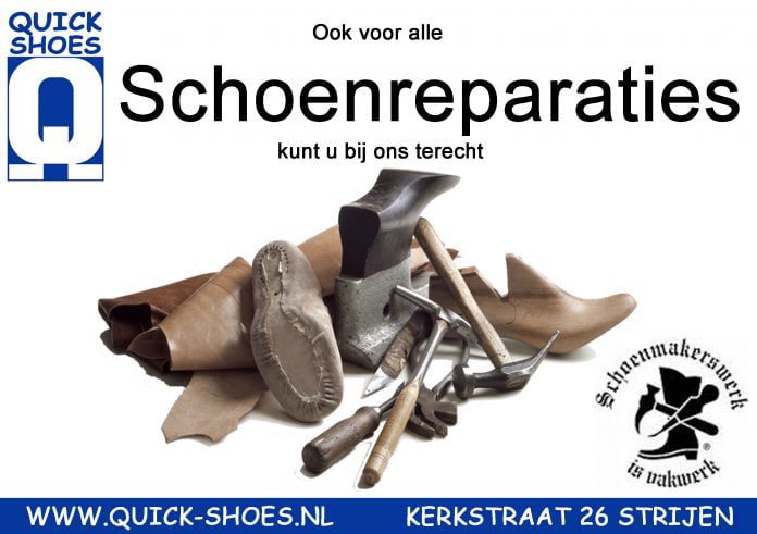 “Ook al uw schoenreparaties worden door Quick-Shoes in eigen schoenmakerij verzorgt”