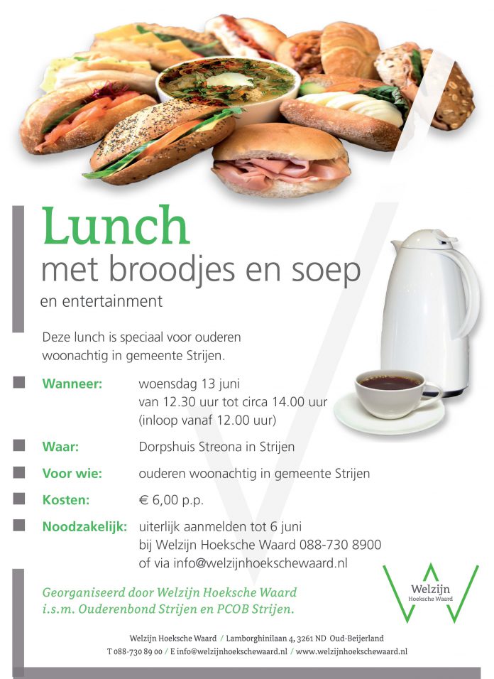 Strijen – Welzijn Hoeksche Waard organiseert op woensdag 13 juni een lunch met brood en soep voor senioren in Strijen.