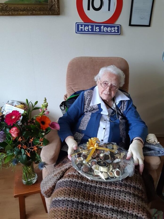 Strijen – Donderdag 4 maart is mevrouw T. Bastemeyer-Verschoor uit Strijen maar liefst 101 jaar geworden 🥳 Dat kon natuurlijk niet onopgemerkt voorbij gaan. Ze kreeg een telefonische felicitatie van de burgemeester en ontving 101 bonbons en een mooie bos bloemen 💐